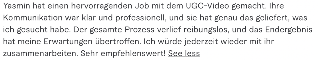 "Hey! Ich bin Yasmin: Gründerin des UGC-Creator Clubs und eine Vorreiterin im Bereich moderner Content Creation. Mit einem Abschluss in International Business und einer Leidenschaft für digitale Innovation habe ich ein erfolgreiches Geschäftsmodell rund um User Generated Content (UGC) entwickelt.